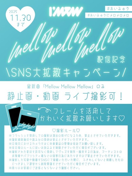 I’mew(あいみゅう)の最新曲「Mellow Mellow Mellow」の配信を記念してSNS大拡散キャンペーンを開催中です。